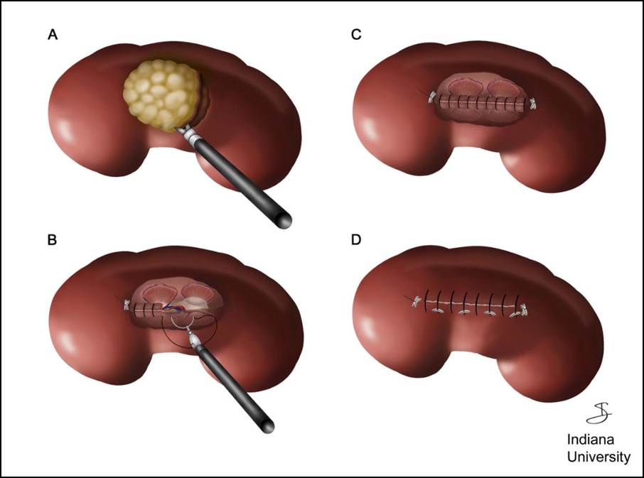 The second approach is kidney-preserving surgery, most commonly in the form of partial nephrectomy or reconstructive procedures. In these operations, the surgeon removes the diseased portion of the kidney while preserving as much healthy tissue as possible.